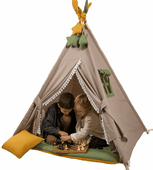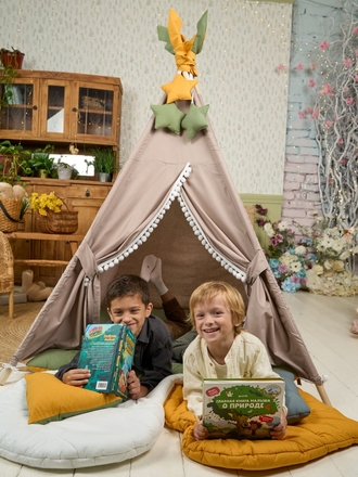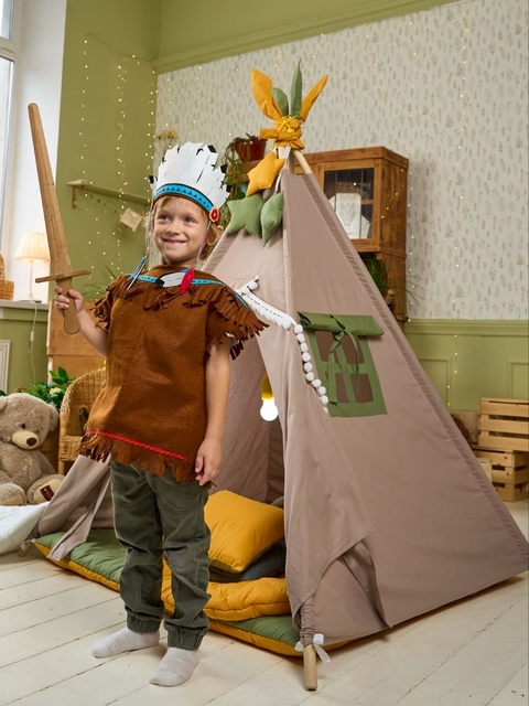 Наши принципы: • Безопасность превыше всего: Вся наша продукция сертифицирована и соответствует строгим стандартам качества. • Экологичные материалы: Мы используем только гипоаллергенные ткани из натурального, дышащего хлопка и льна. Никакой химии — только чистая экология для ваших детей. • Безупречное качество: Прочная фурнитура, надежный каркас и аккуратная строчка — наш вигвам выдержит любые авантюры и станет верным спутником на долгие годы.