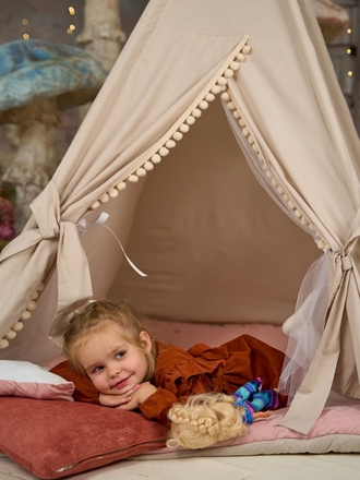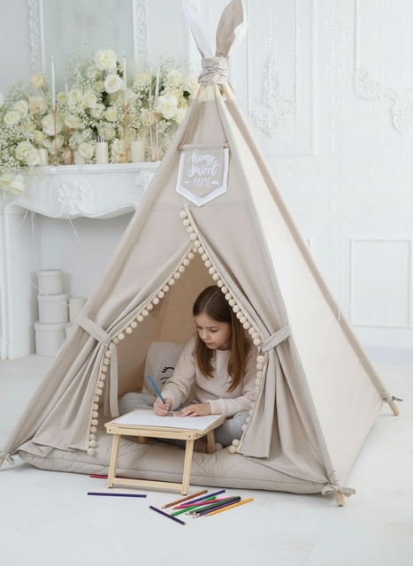Очень красивый вигвам, качественный, стильный! Нам зашел прям 10 из 10. Ребенок так ждал, когда соберем и весь день почти играл там)! Для уютных вечеров в квартире))